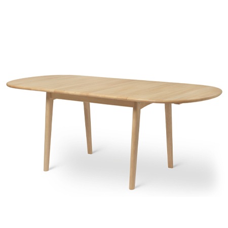 来客に応じて大きさを変えることができる伸長式テーブル。すべてのパーツが丸みを帯びており、質感と使い心地の良さ、クラフトマンシップに対するこだわりが感じられる逸品。