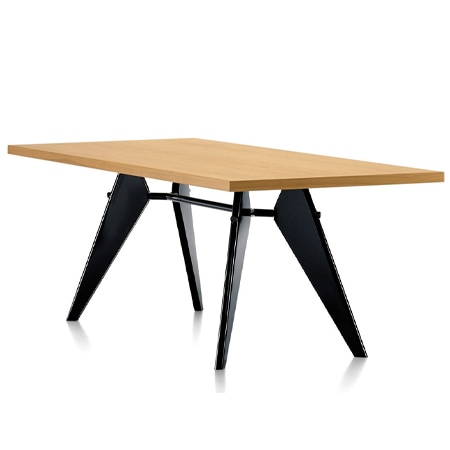 ジャン・プルーヴェの代名詞である三角形の脚を使用したテーブル。「EM」は Entretoise Metallique(鉄の横木)を意味し、4本の脚を繋ぐスチールバーからきている。