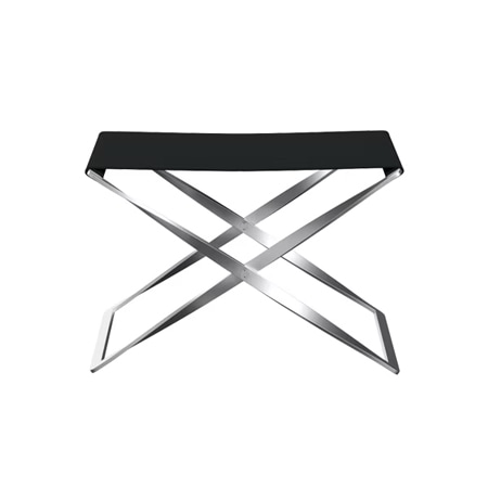 古代エジプト時代から存在していた折りたたみスツールがモチーフ。折りたたんだときの姿も美しくなるようフレームを少しねじるなど、細部にこだわりが見られます。