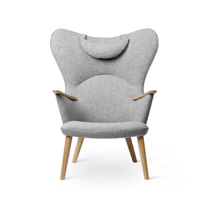 ママ・ベアの愛称で知られるハンス J. ウェグナーのCH78ラウンジチェア。温くもりのある曲線が創り出す、軽快で優雅なシルエットが大きな特徴。座ると優しく包み込まれるような心地良さがある。(509,300円)