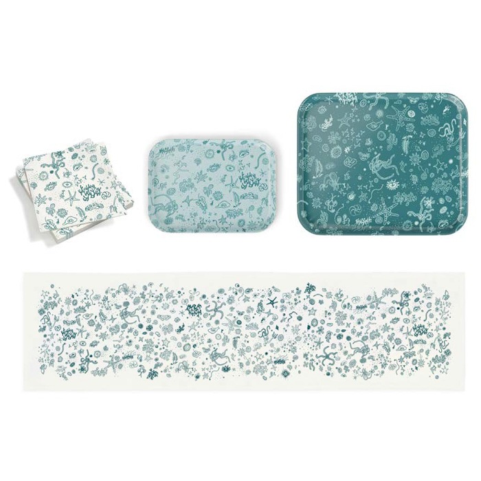1945年にレイ・イームズがデザインした「海のいきもの」シリーズ。ヒトデやクラゲ、甲殻類、海藻など海洋生物が散りばめられたモチーフになっています。ペーパーナプキン、クラシックトレイ、テーブルランナーの3アイテムで展開。(ペーパーナプキン:990円/クラシックトレイM:9,020円/クラシックトレイL:12,100円/テーブルランナー:9,460円)