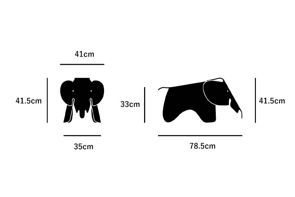 「イームズエレファント プライウッド」のサイズです。