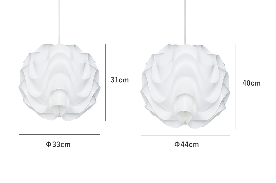 立体的な曲線のデザインは、まるで彫刻作品のよう。明かりを灯していない時でも空間のアクセントになります。明かりを灯すとダイナミックな陰影が浮かび上がり、上質で心地よい空間に。1枚のシートから作り出されているとは思えない複雑な折りは、卓越した技術をもった職人が手作業で行っています。クラフトマンシップへのこだわりを感じさせる逸品です。
