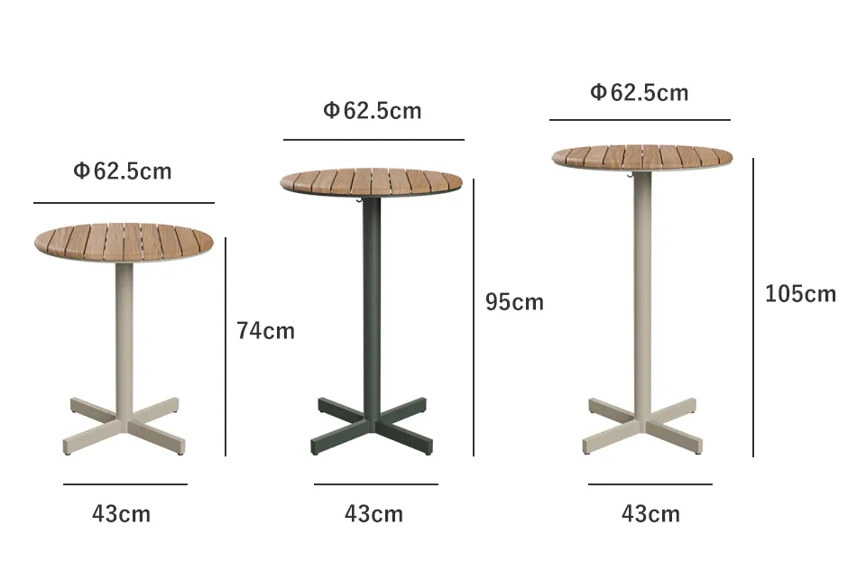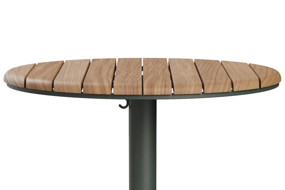 チーク材とアルミニウムの異素材を組み合わせたアウトドアテーブル