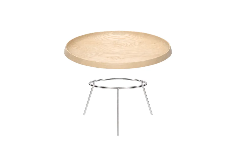 トレイは直径65cmと大きいので、雑誌や小物を置くコーヒーテーブルとして使えます。名前の通り、フルーツをまとめて置いてもインテリアのアクセントになります。美しいトレイとシンプルなスチールの脚で構成されたデザインは、ただ置いてあるだけでオブジェとしても楽しめます。他にも、グラスを置いたり、照明を置くなど、アイディア次第で様々な用途で使えます。